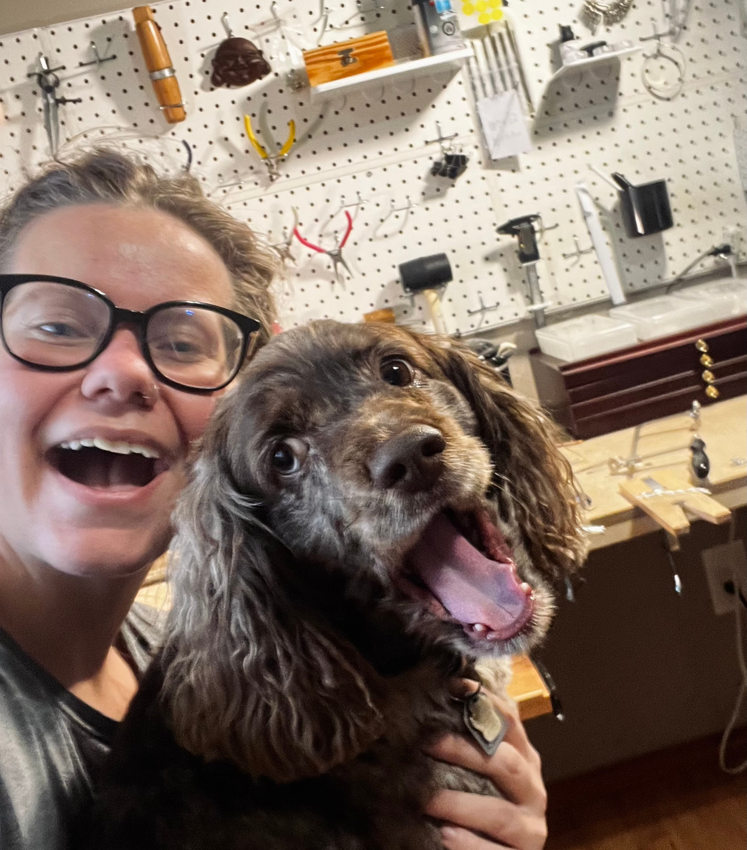 My name is Ciara and I am a self-taught silversmith making original and unique silver jewelry from my home studio based in Calgary, Alberta, Canada. (and this is my assistant Murphy.)