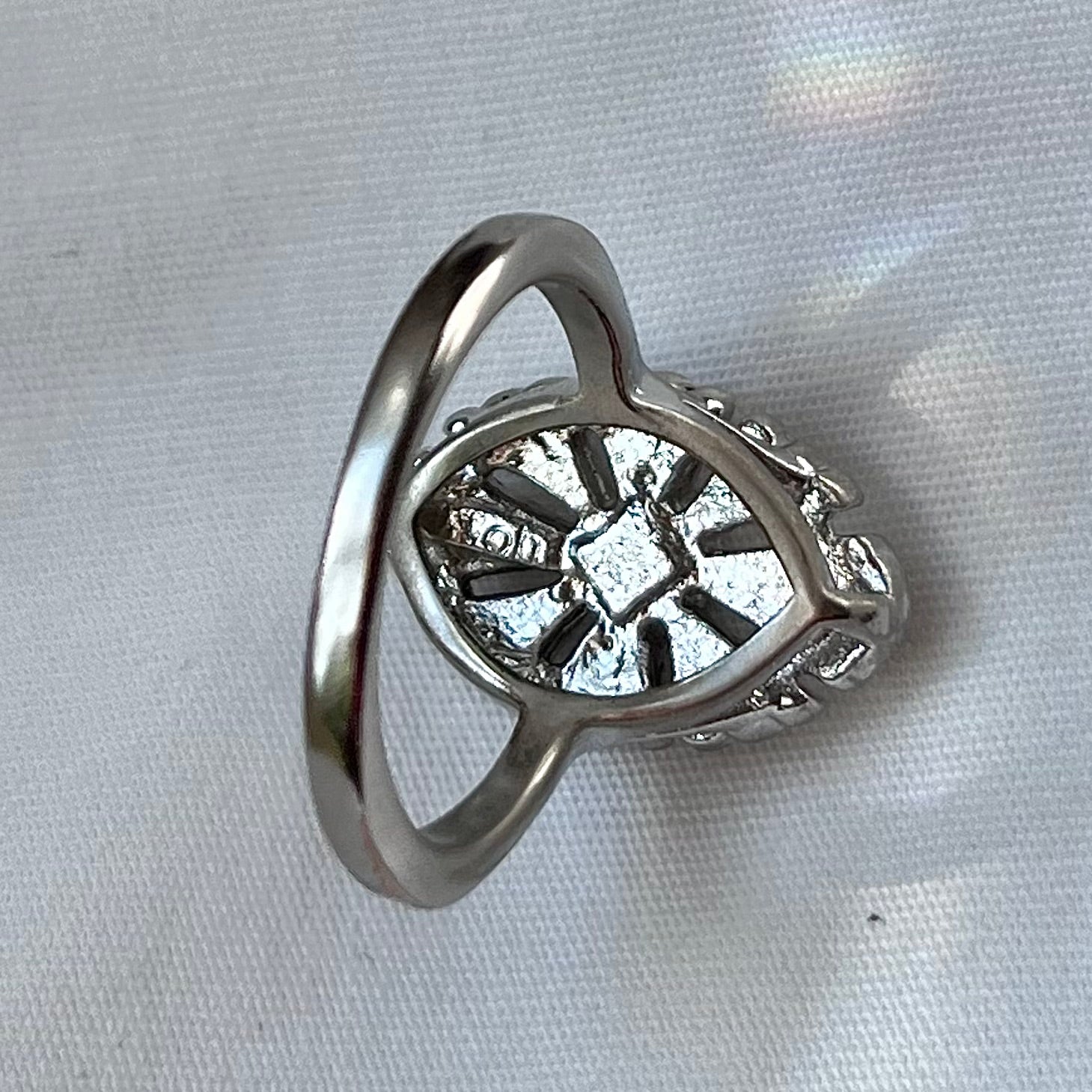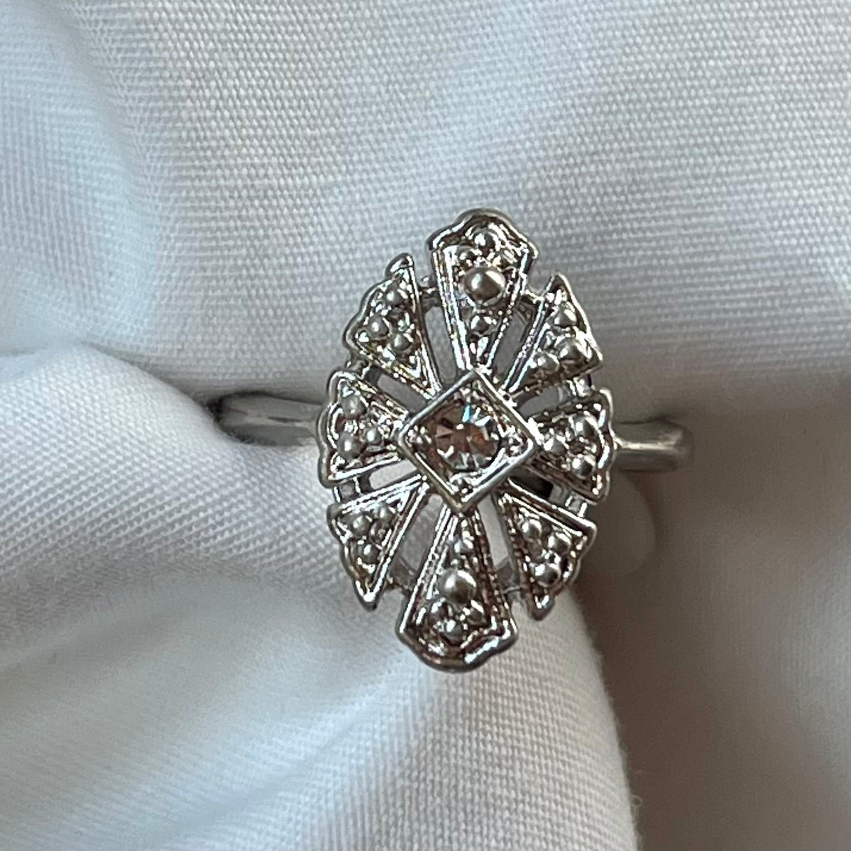 This art deco style ring is from 1980. Made and stamped by Avon.