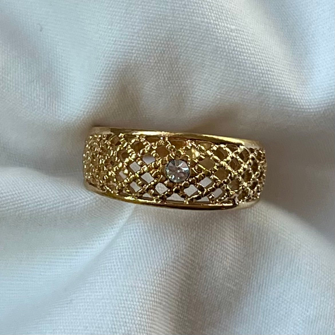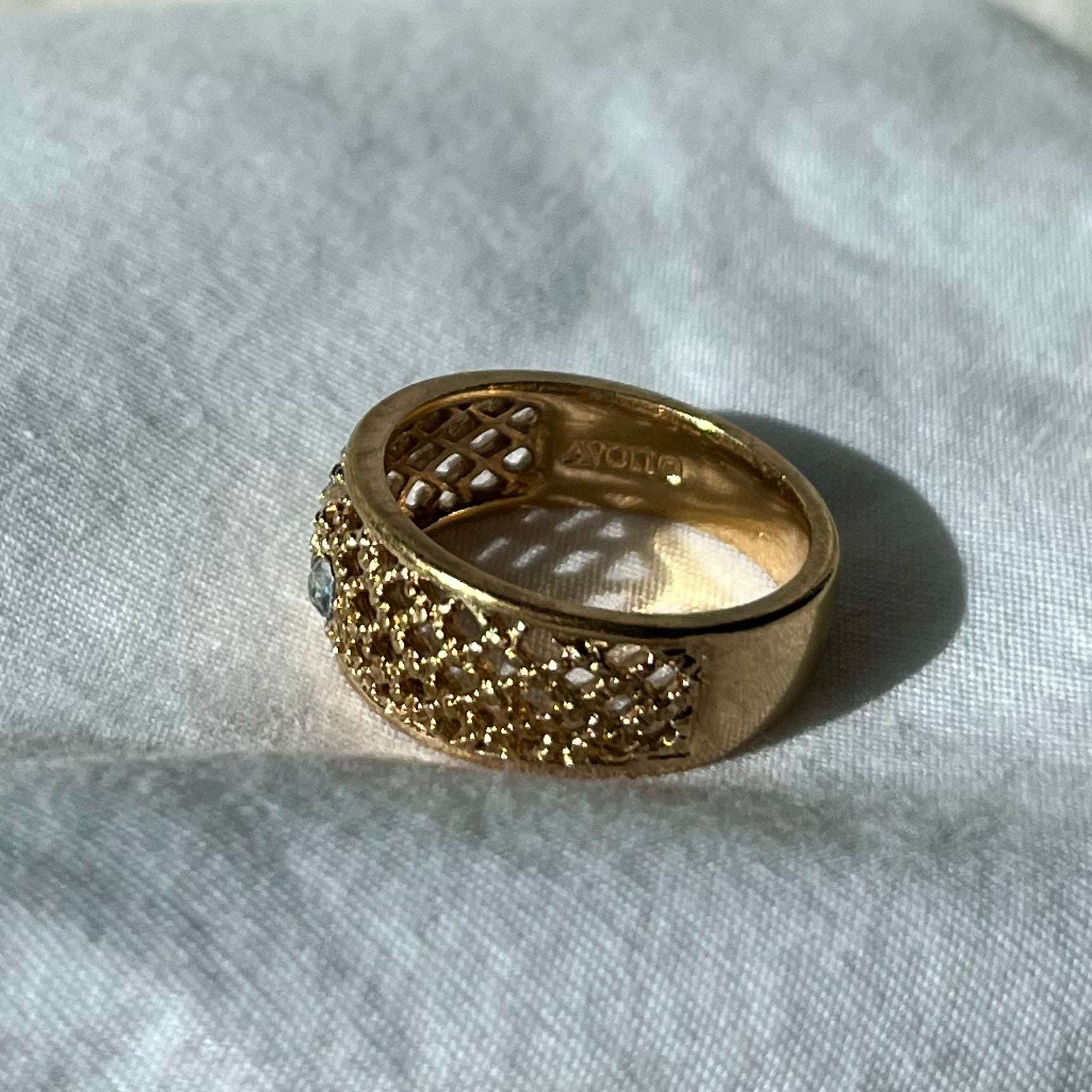 This openwork style ring is from 1978. Made and stamped by Avon.