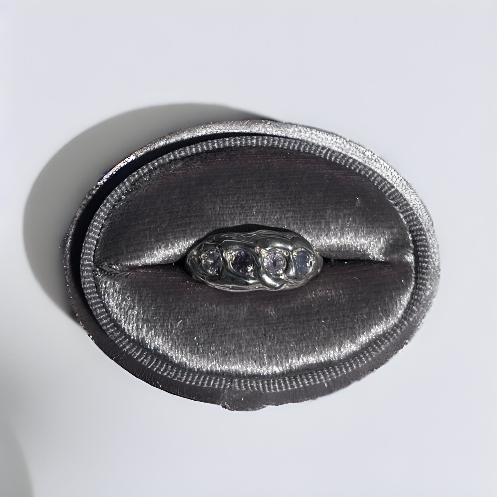 This unique, original design is made from solid sterling silver and featuring four hand-set sapphires in varying lilac tones.